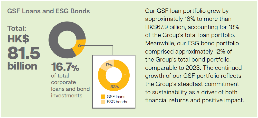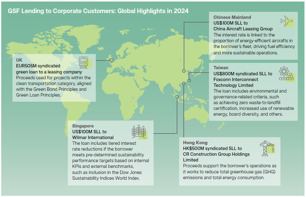 We have developed and rolled out sustainability-focused products and services across the Group to support our customers on their own sustainability journey. For instance, we offer GSF lending solutions for corporate customers and participate in global sustainability-linked loans and syndicated transactions.