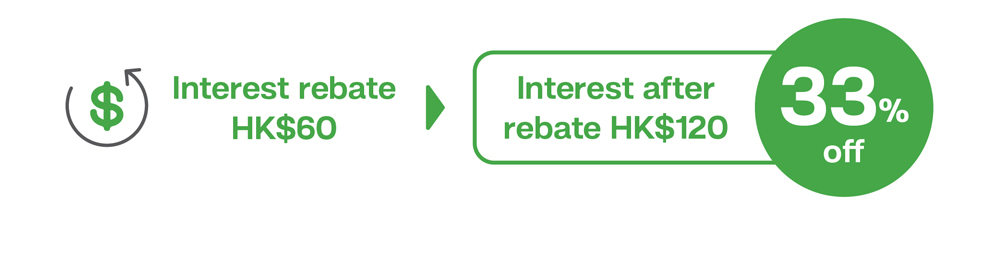 - Instalment amount of HK$200 or above with a repayment period of 3-60 months can enjoy up to 2-month interest rebate.
