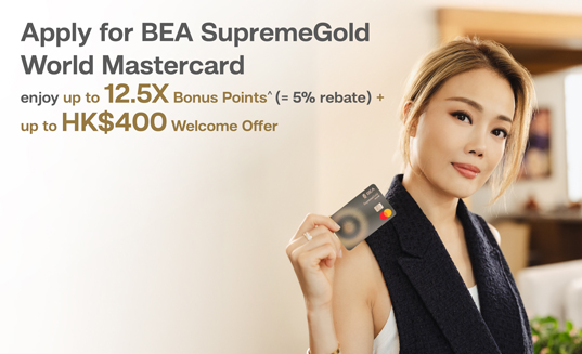 ^ Registration of "Designated World Mastercard Spending up to 12.5X Bonus Points” through BEA Mall App is required; the 5% rebate is calculated based on the preferential redemption rate of the designated rewards.