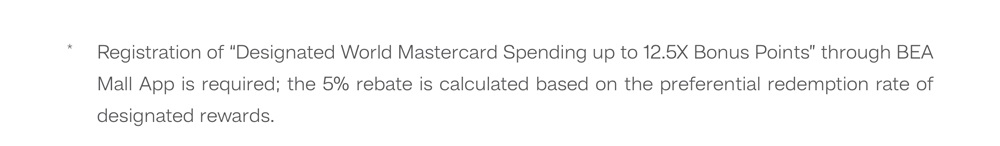 Apply for a BEA World Mastercard during the promotional period, and meet the below accumulated eligible spending, will be entitiled to the Welcome Offer 2 :