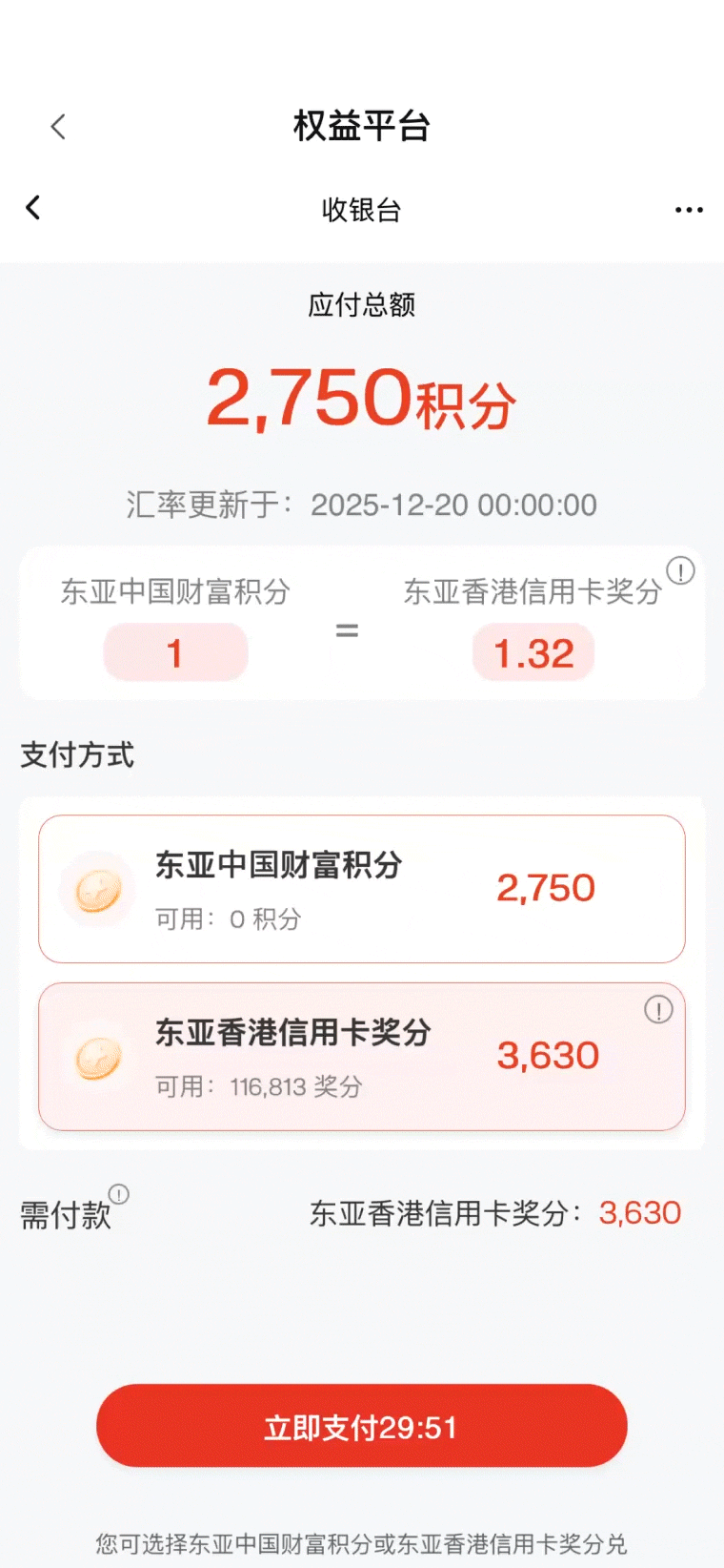 东亚中国财富积分 /东亚香港信用卡奖分