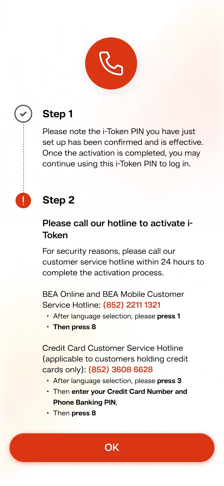 • If you are non HKID customers or fail digital ID verification, please call our customer service hotline within 24 hours to complete the activation process. -