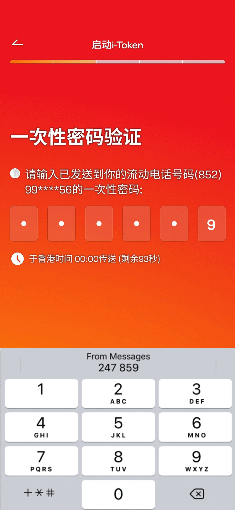• 输入发送给你的一次性密码 (“OTP”) -
