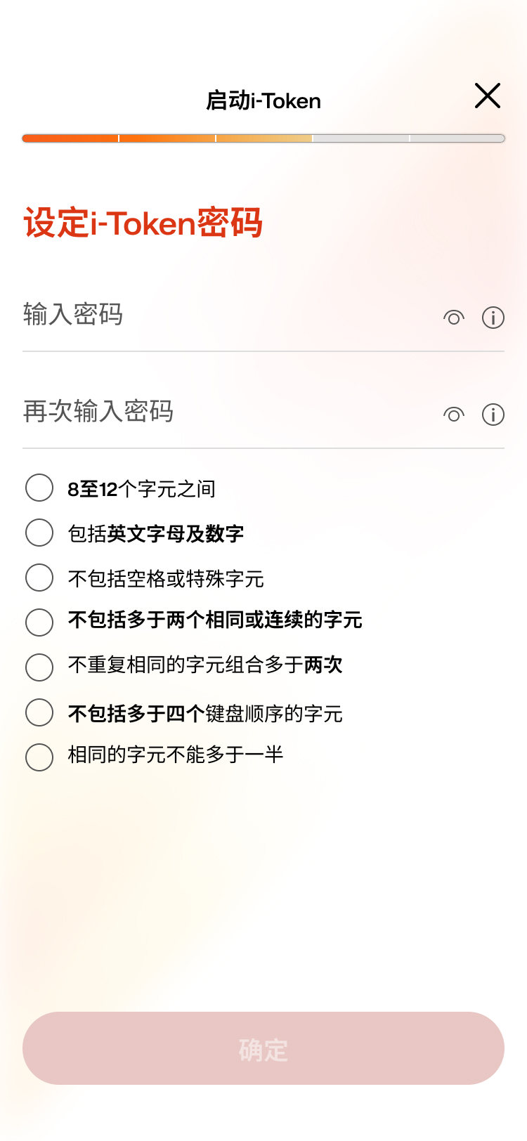 • 设定你的i-Token密码 • 选择「确定」 -