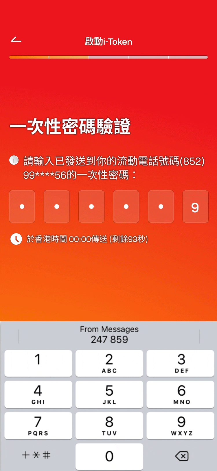 • 輸入發送給你的一次性密碼 (“OTP”) -