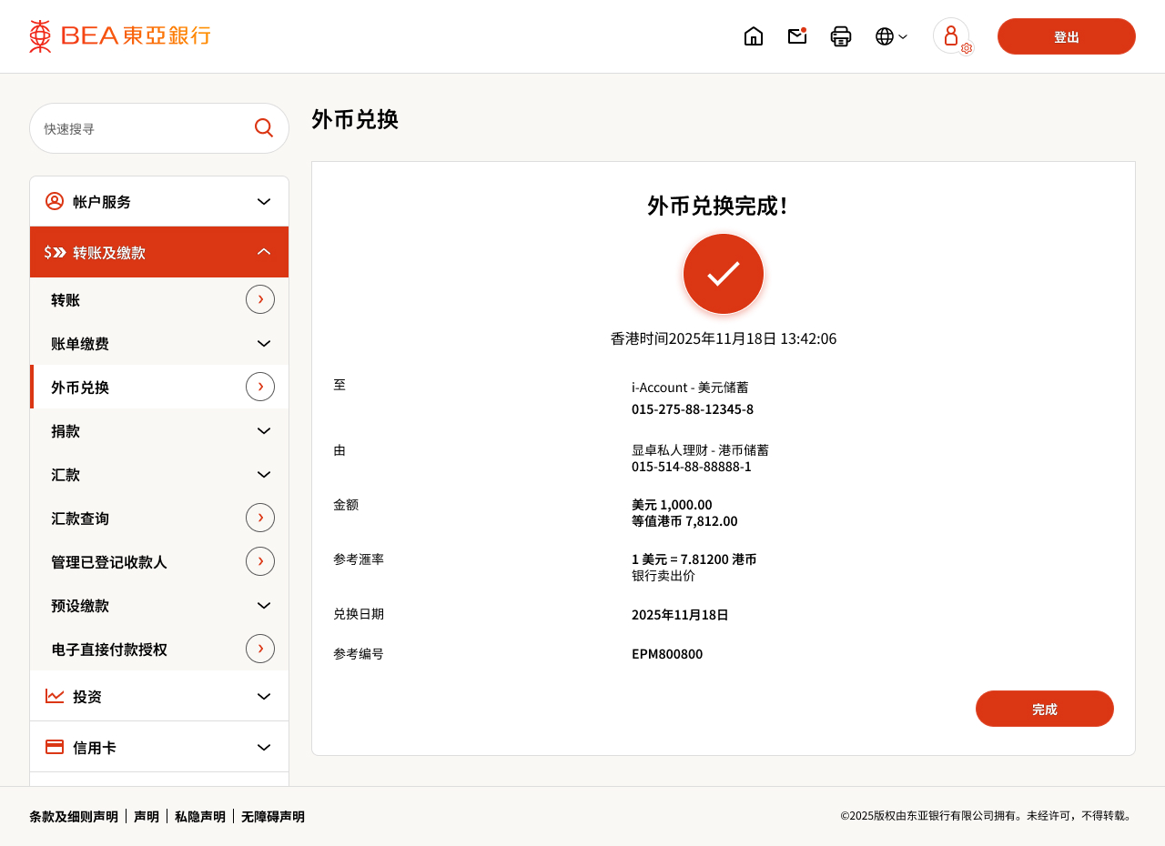 通过东亚网上银行可随时随地兑换外币, 过程简单丶方便。