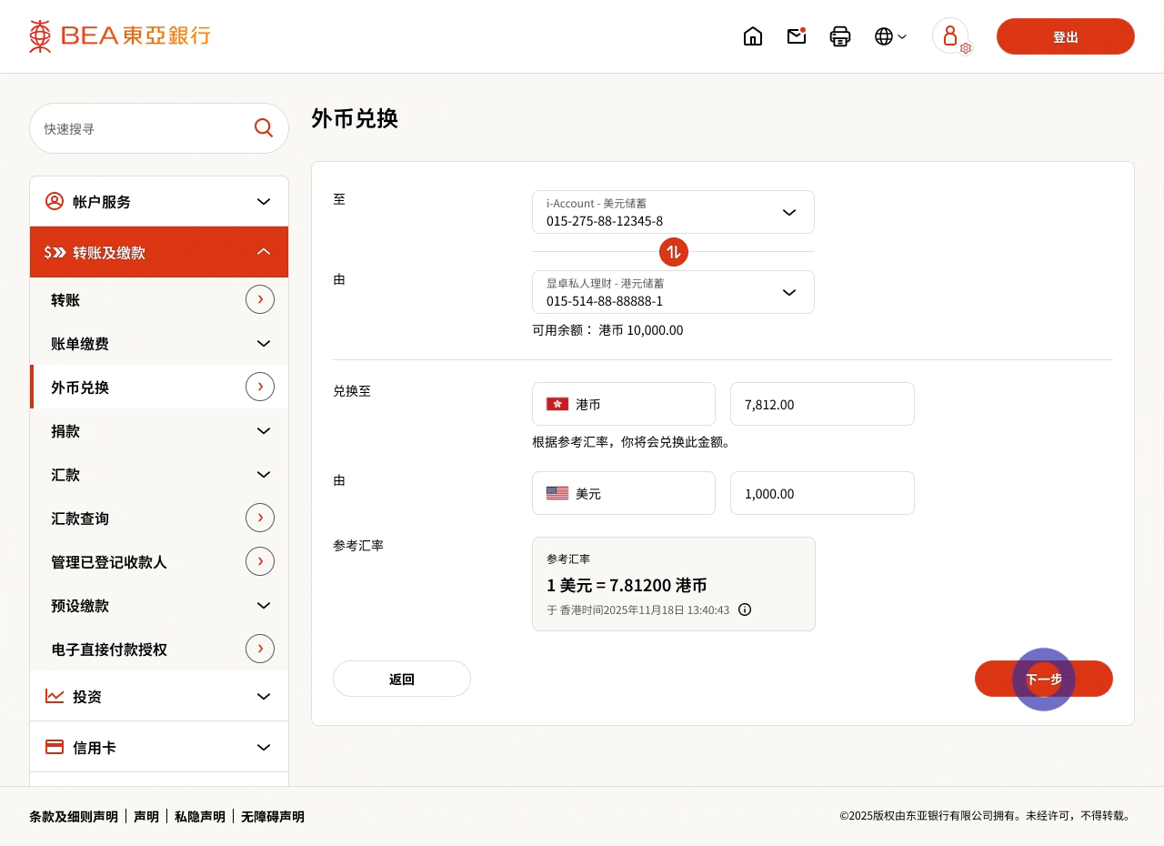 东亚网上银行 – 兑换外币