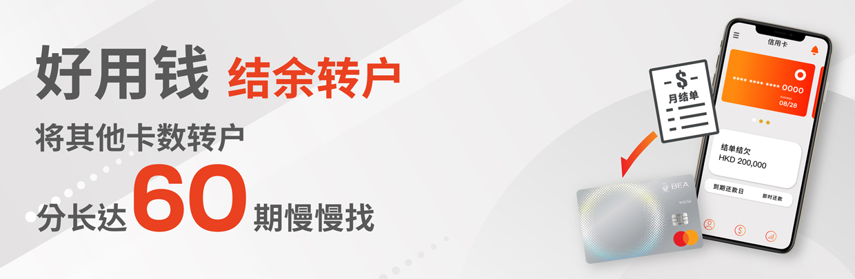 面对一大堆卡数,令你喘不过气?只要用东亚银行信用卡「好用钱」结余转户计划,即可专享特低个人化息率,大大减省利息开支,让你解除高息束缚。