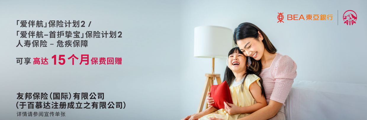 - 东亚银行已于保险业监管局注册为持牌保险代理机构,并担任友邦保险(国际)有限公司(于百慕大注册成立之有限公司)(「友邦保险」)的指定持牌保险代理人。此保险计划是友邦香港而非东亚银行的产品。