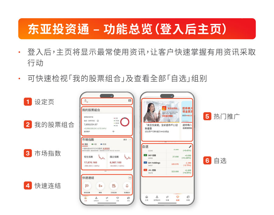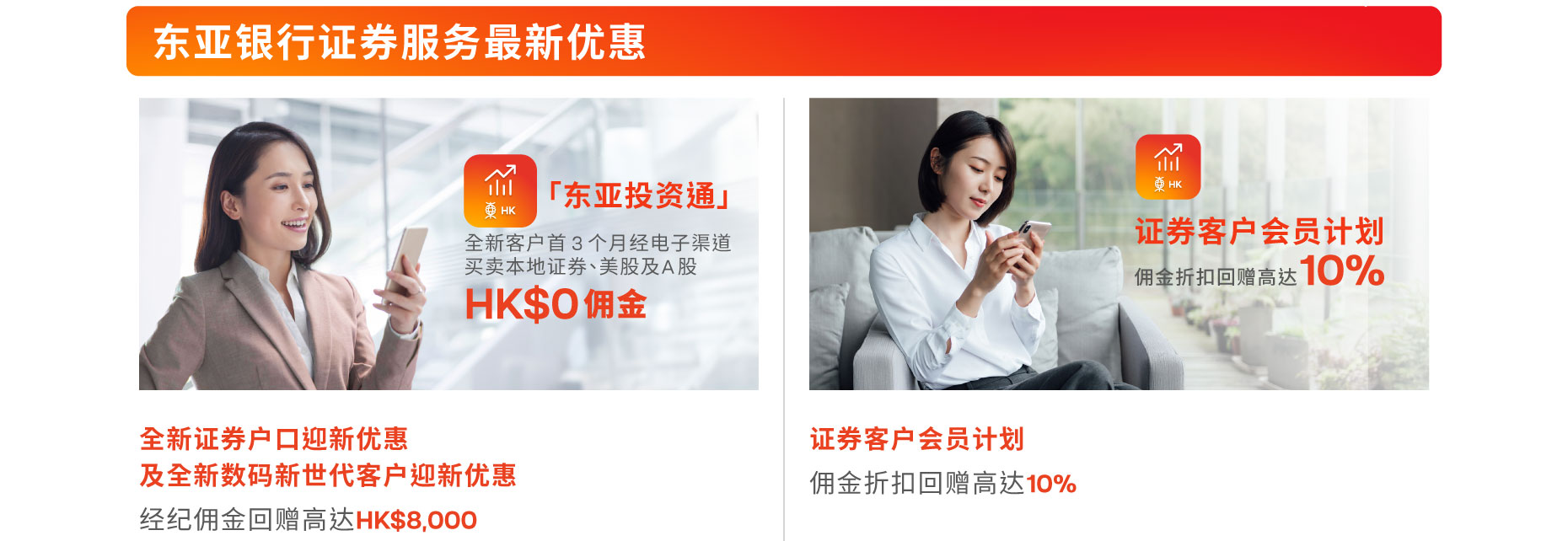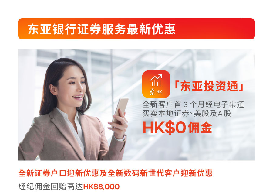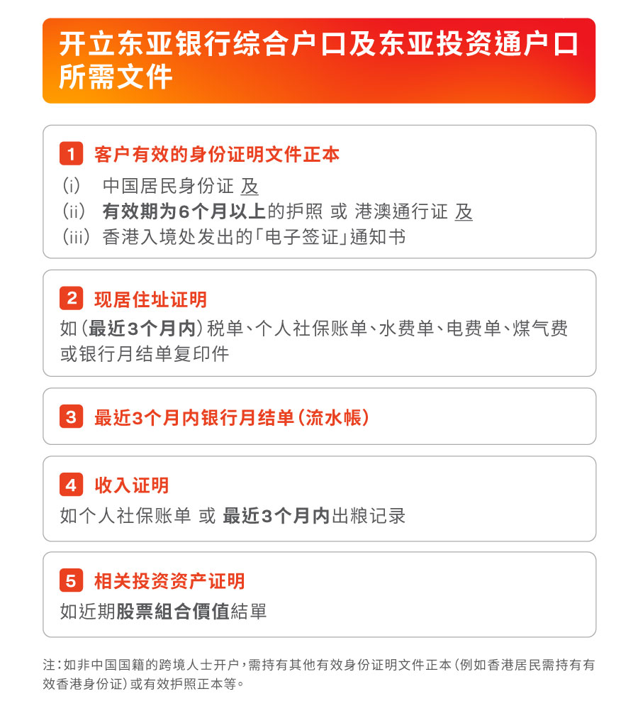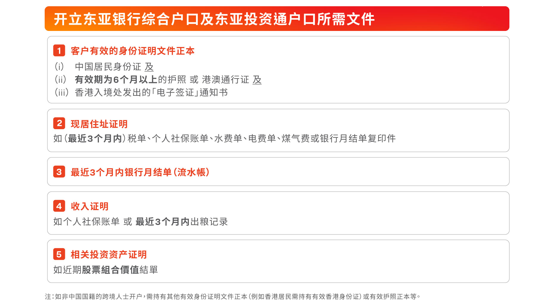 新跨境客户需先亲临香港分行开立综合户口及东亚投资通户口。