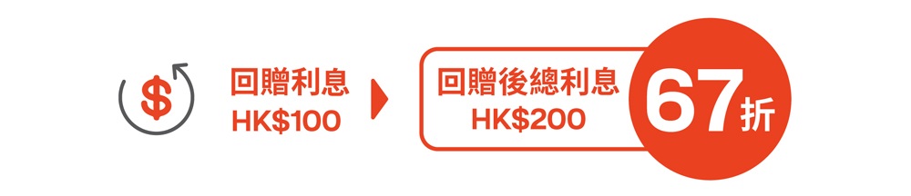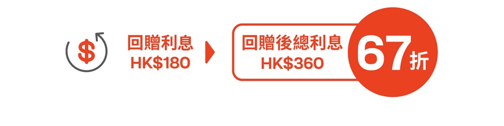 - “優惠1”: 利息回贈將於2026年3月31日或之前存入有關信用卡賬戶,並顯示於有關結單。持卡人之賬戶及有關申請於利息回贈發放時必須維持有效。包括利息回贈之實際年利率低至2.50%,此實際年利率以兌現金額HK$50,000、每月平息0.18%、還款期6個月及兩個月利息回贈計算。