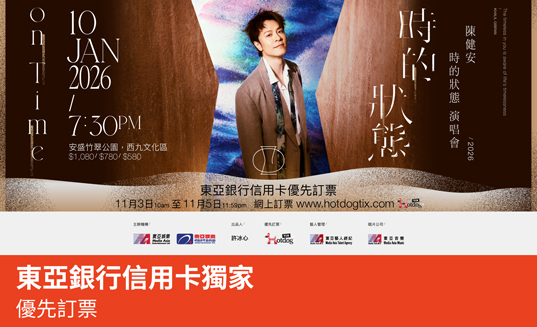 優先訂票渠道:www.hotdogtix.com 或 HotdogTIX手機應用程式 [按此瀏覽HotdogTIX購票流程]