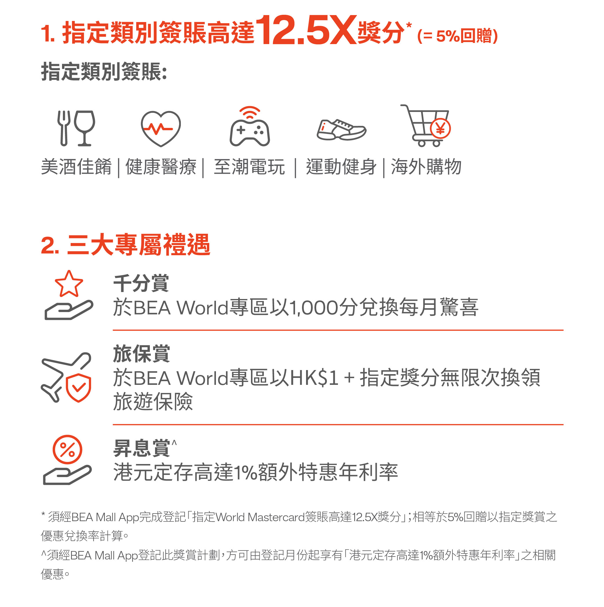 - 了解更多有關東亞銀行World Mastercard卡之全新簽賬獎賞體驗,詳情請瀏覽此。