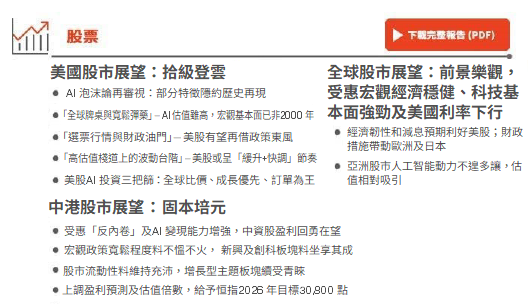 聯邦公開市場委員會成員對12月降息意見分歧、美國政府停擺導致美國經濟數據缺失,以及美國大型科技公司為人工智能資本支出發行巨額債券,這些因素可能在短期內對美國利率走勢構成壓力。鑑於勞動市場疲軟和住屋通脹持續降溫,聯儲局可能仍會繼續降息。 |