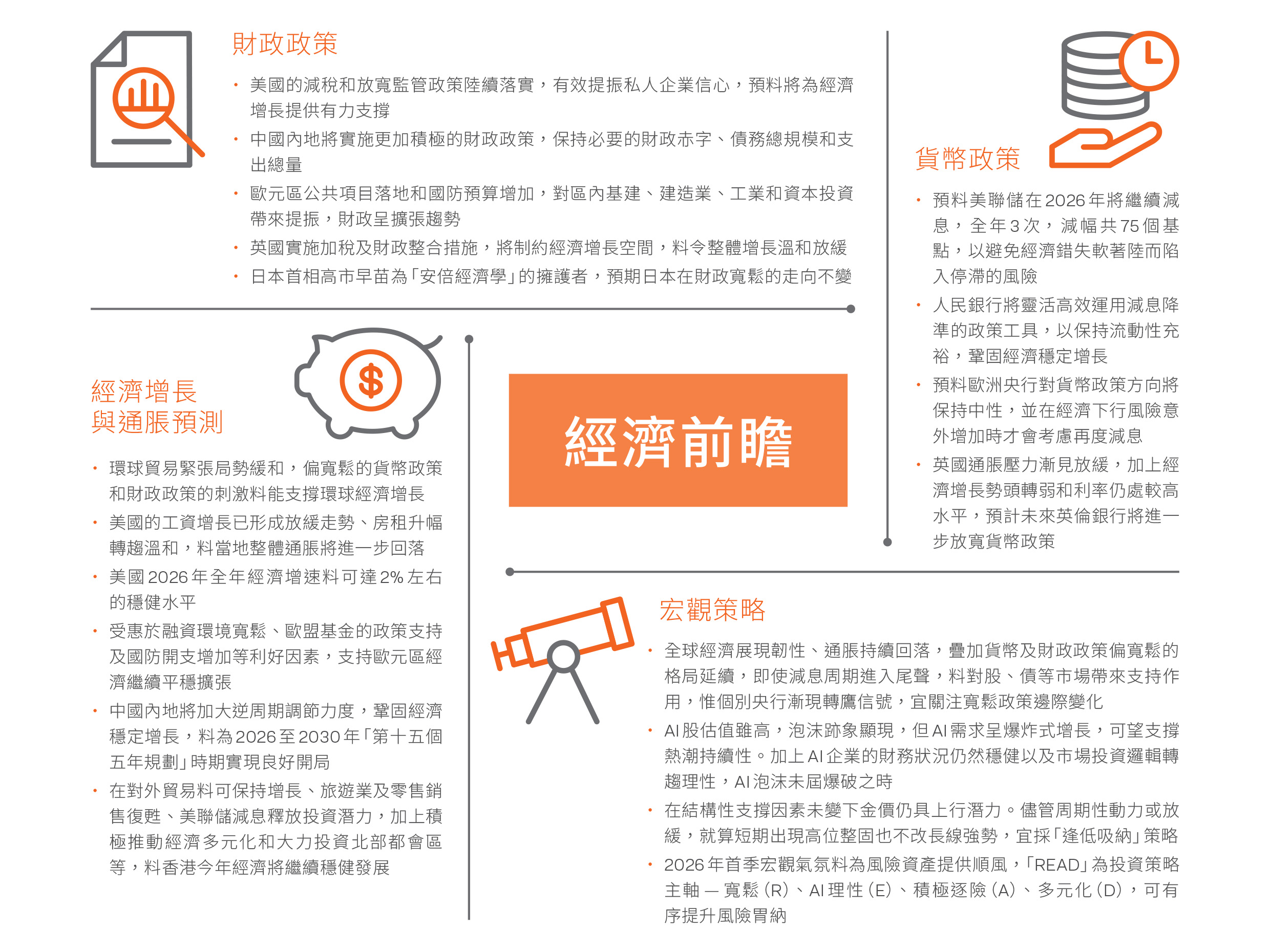 有關資料所表達的預測及意見只作為一般的市場評論,並不構成任何投資的要約或有關要約的招攬、建議、投資意見或保證回報。本網頁所表達的資訊、預測及意見以截至發佈之日期為依據,可予修改而毋須另行通知,及不可被視為就任何投資產品或市場的建議。有關資料未經香港證券及期貨事務監察委員會、香港金融管理局或任何香港監管機構審核。