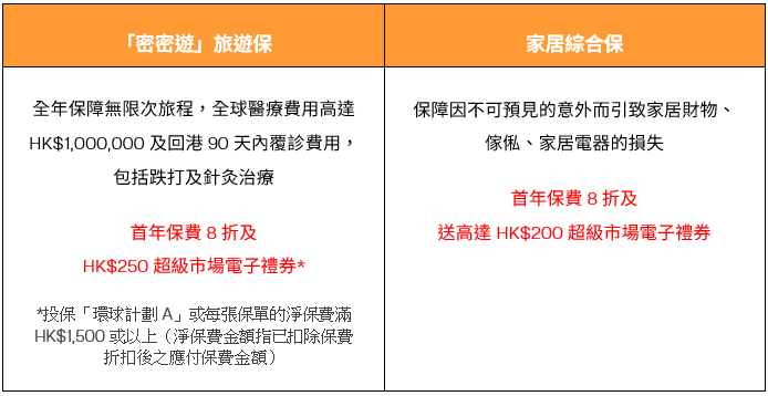 點配搭先係最明智? 而家任意揀選最適合自己嘅保障,除了享有現有優惠之外,亦可搭上搭優惠,額外送高達HK$500超級市場電子禮券,滿足精打細算嘅你!